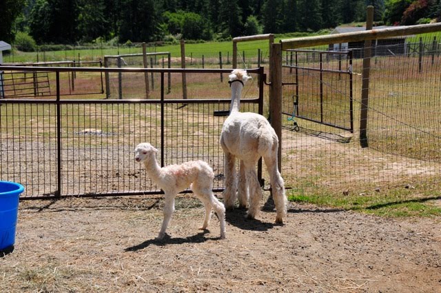Rocky joined the world on a fantastic summer day. It was picture perfect for alpaca birthin'- unless you are Tinkerbelle his mother. Tinkerbelle is busy. She is busy, busy, busy contemplating the universe. She is busy in a Zen sort of way. You know lots of watching birds and grass growing and the farmer across the street. Babies? not on the agenda. Birthing is for other alpaca- not her. She is busy.