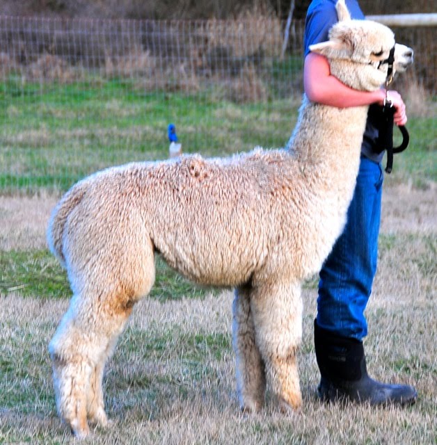 I will try, no really I will, to get a couple of more current, photos of him to share. I so wish everyone could visit with Buddy- he leads well, and is sweet, sweet, sweet. (I do not say this about all of my animals, just wait till you read about some of our less angelic camilids)