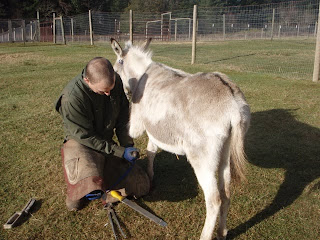 Even though I have been doing the up-keep on our donkey girls hooves (hee-hawwww) I thought they deserved a professional pedicure to make them feel special.