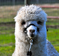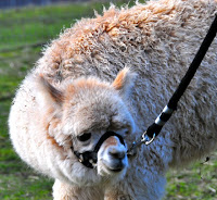 Orcas Moon’s Sargent Pepper- a.k.a. The Red Devil- If there is trouble in the cria field I know who is at the root of it. Itsy bitsy Red Devil. We have had a little trouble getting the Devil to walk on the lead. Luke was head butted by the Devil. Both looked stunned when they got up. Now he is getting the picture- he doesn’t go exactly where I want him to but we WILL get there.